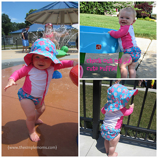 July 19, 2016 at 12:59 pmLove the little hat with it and the zipper! The rash guards are tough to pull off when wet sometimes. Don’t forget the sun can reflect off the water and still bounce up to burn little faces too so still sunscreen the face. My brother got a bad burn on his face as a toddler from sun reflection at the lake.